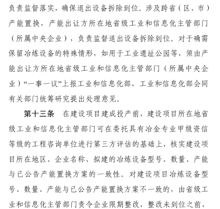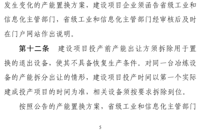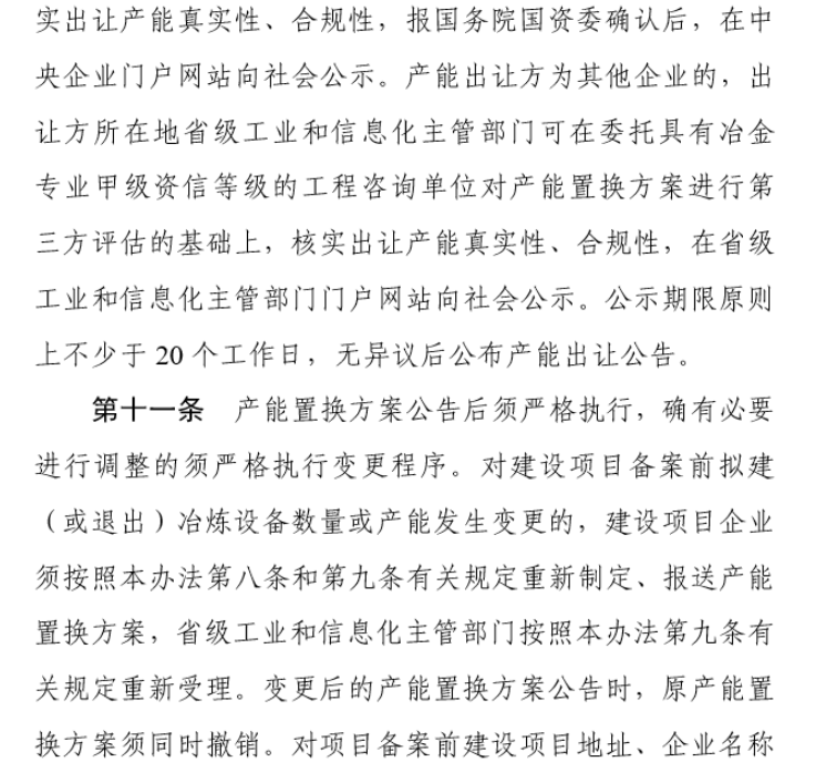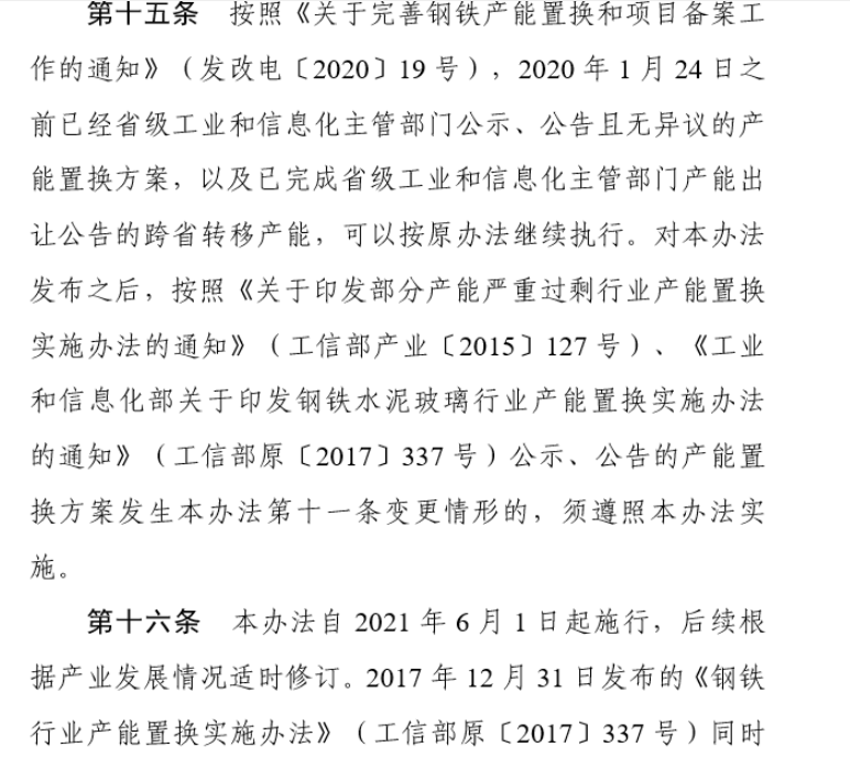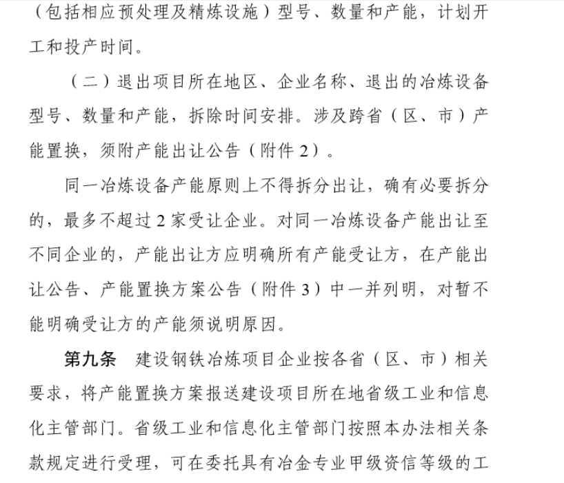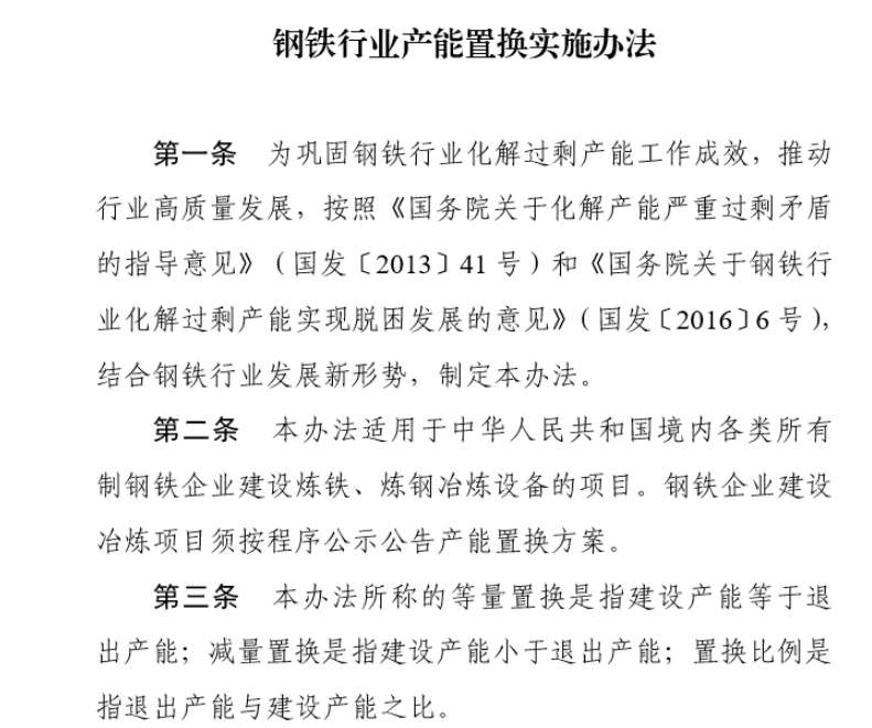 附原文:工业和信息化部关于印发钢铁行业产能置换实施办法的通知