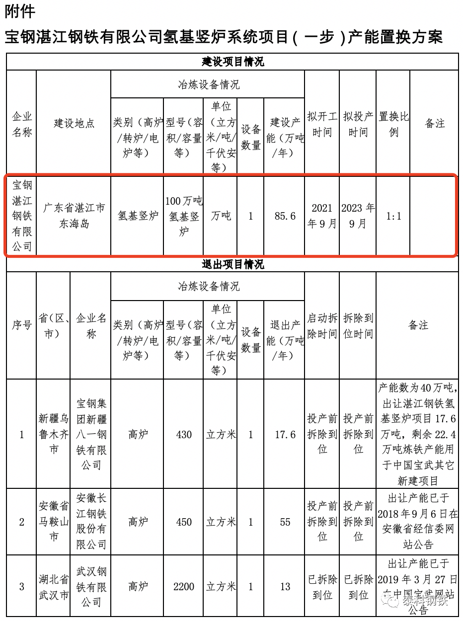 附件:宝钢湛江钢铁有限公司氢基竖炉系统项目(一步)产能置换方案