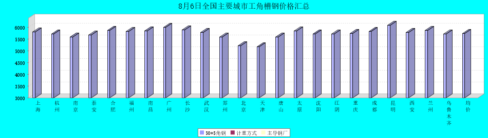 2021年8月6日全国主要城市工角槽钢价格汇总