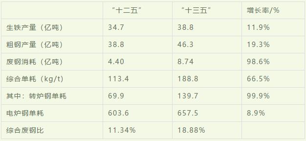 表1“十二五”和“十三五”期间钢铁生产和废钢铁消耗数据对比