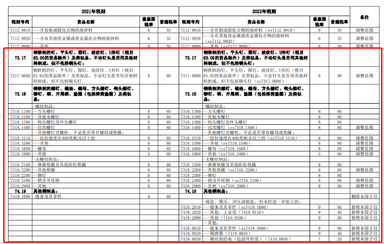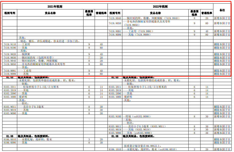 根据《中华人民共和国进出口关税条例》、《商品名称及编码协调制度》2022年转版、多双边经贸协定以及我国产业发展情况,调整以下税率:
