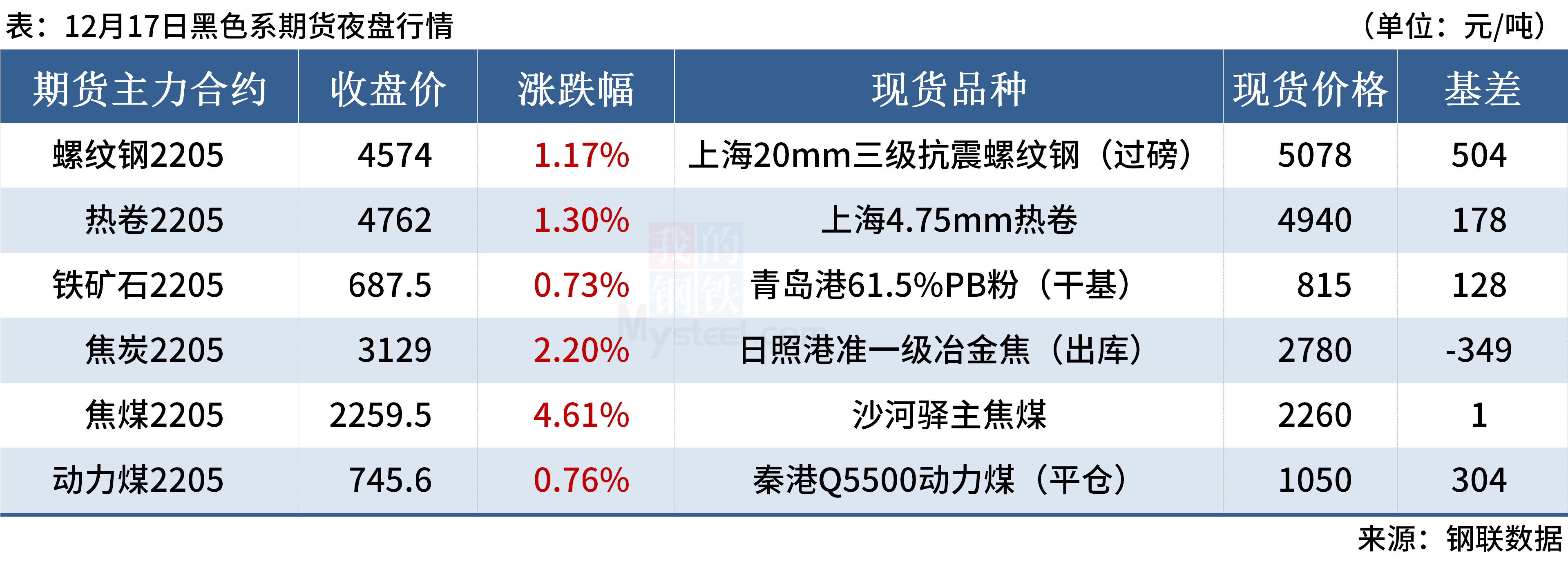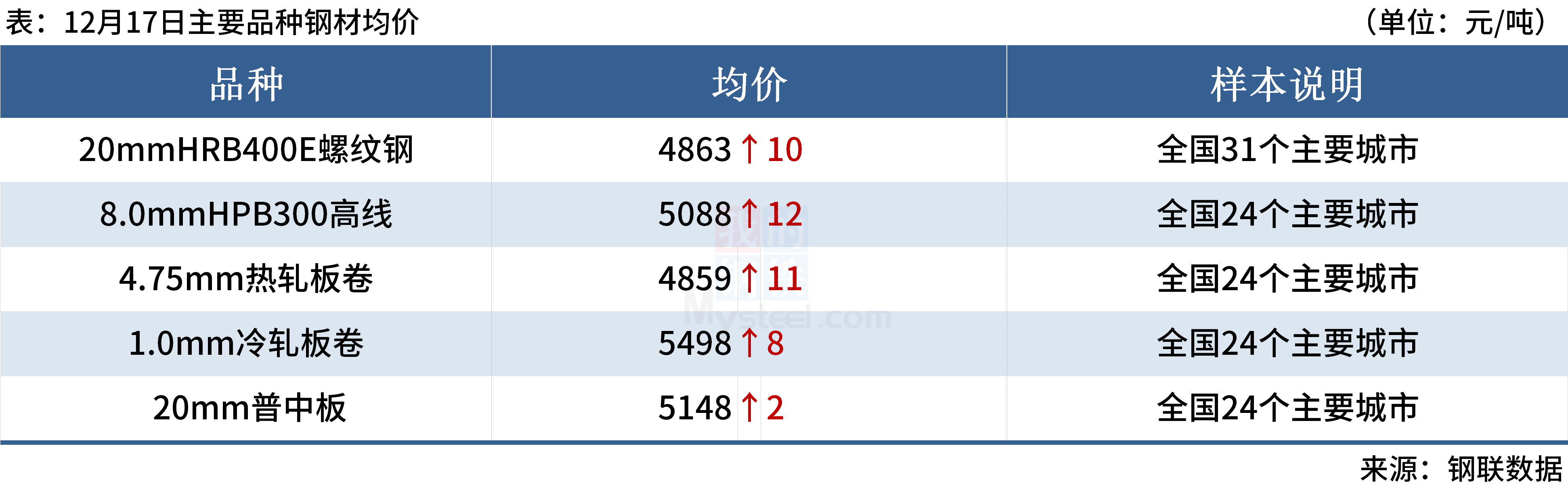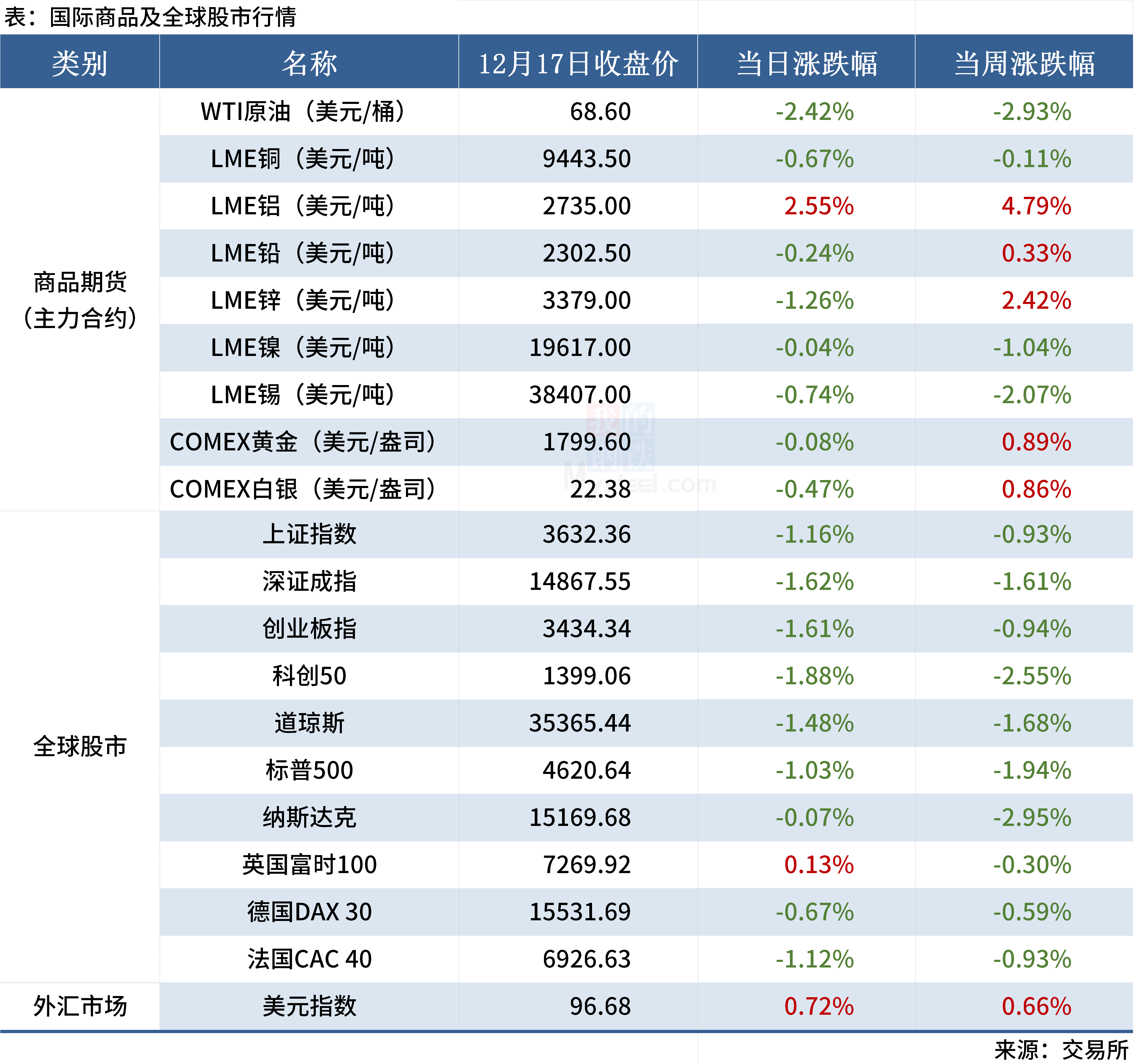 ◎ 12月17日,全国主港铁矿石成交109.3万吨,环比减21%;237家主流贸易商建材成交16.45万吨,环比减5.5%。