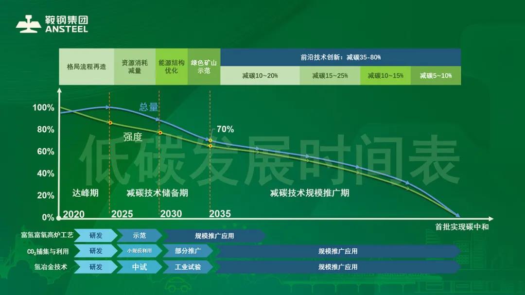 在此次鞍钢集团发布的低碳冶金路线图中——