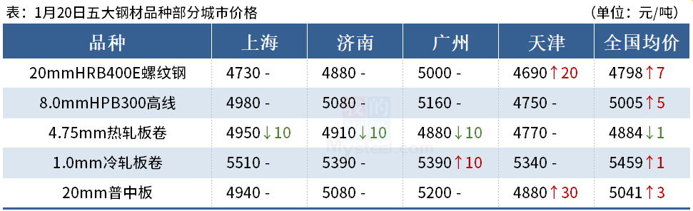 ◎ 1月20日唐山迁安地区普方坯资源出厂含税上调30,报4440元;秦皇岛卢龙地区普方坯价格上调30,执行4440元含税出厂。