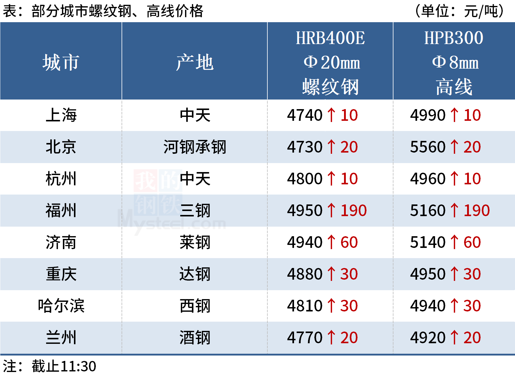 ◎上海:7日早盘建材市场价格上涨10。现螺纹4670-4710,西城抗震4720,其他4590-4650,兴鑫抗震4660,联鑫黄海抗震4670,盘螺4790-4990,高线亚新4690。(单位:元/吨)