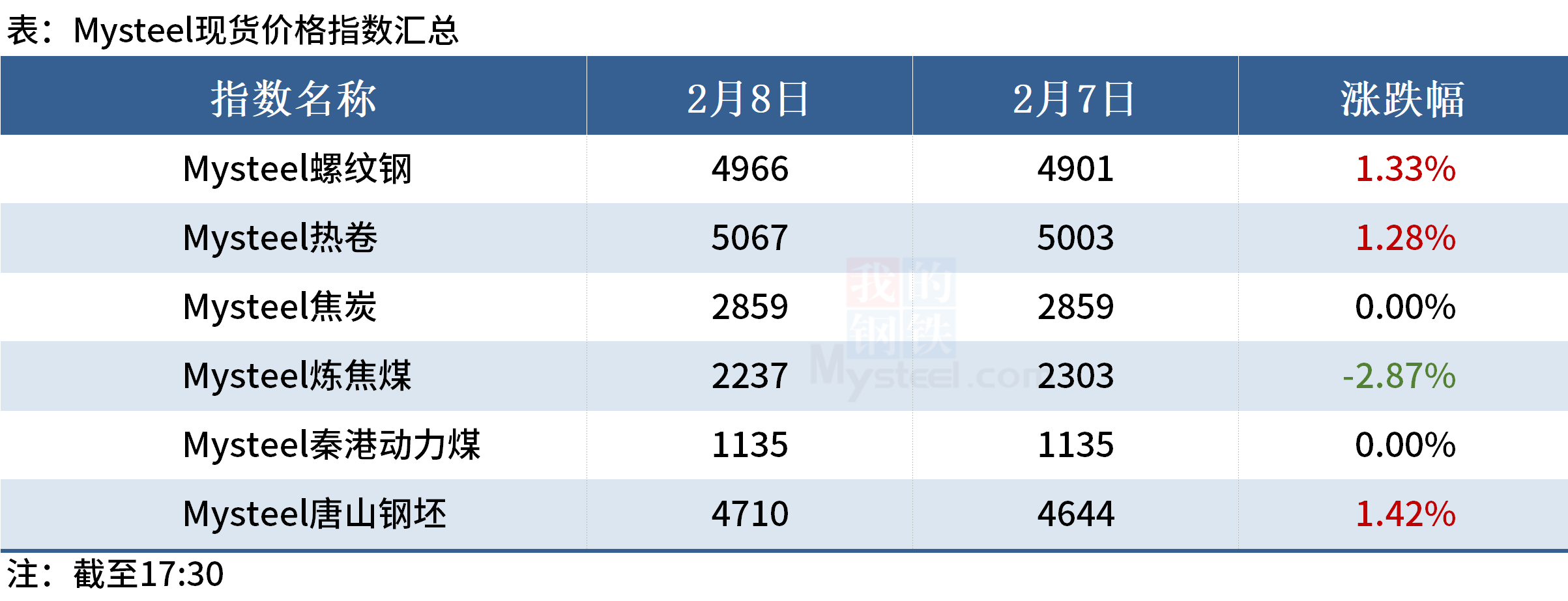 ◎ 2月8日,Mysteel统计全国45港进口铁矿库存15726.30万吨,环比增416.37万吨;同时,47港进口铁矿石库存总量16286.30万吨,环比累库463.37万吨。详情>>