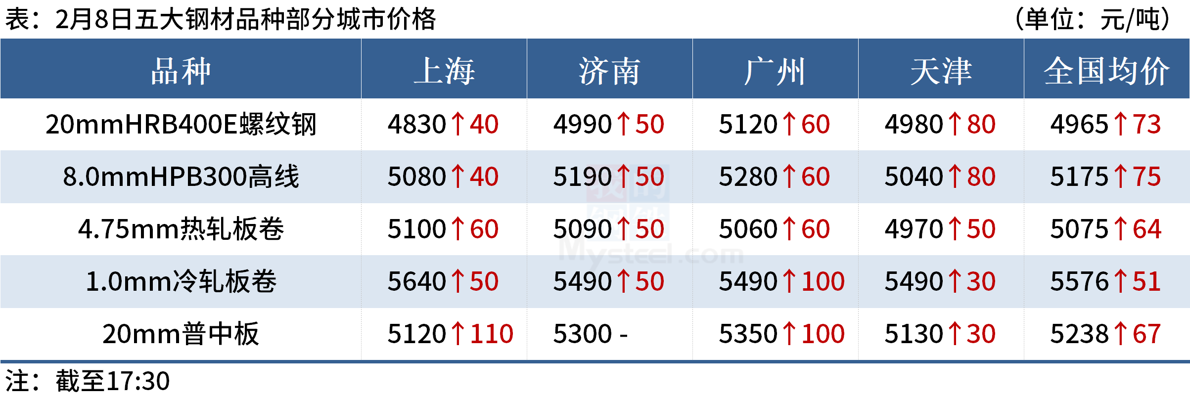◎ 2月8日唐山迁安地区普方坯资源出厂含税累计上调70,报4670元。