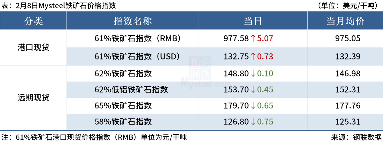 ◎2月8日,全国主港铁矿石成交60.10万吨,环比增17.4%。
