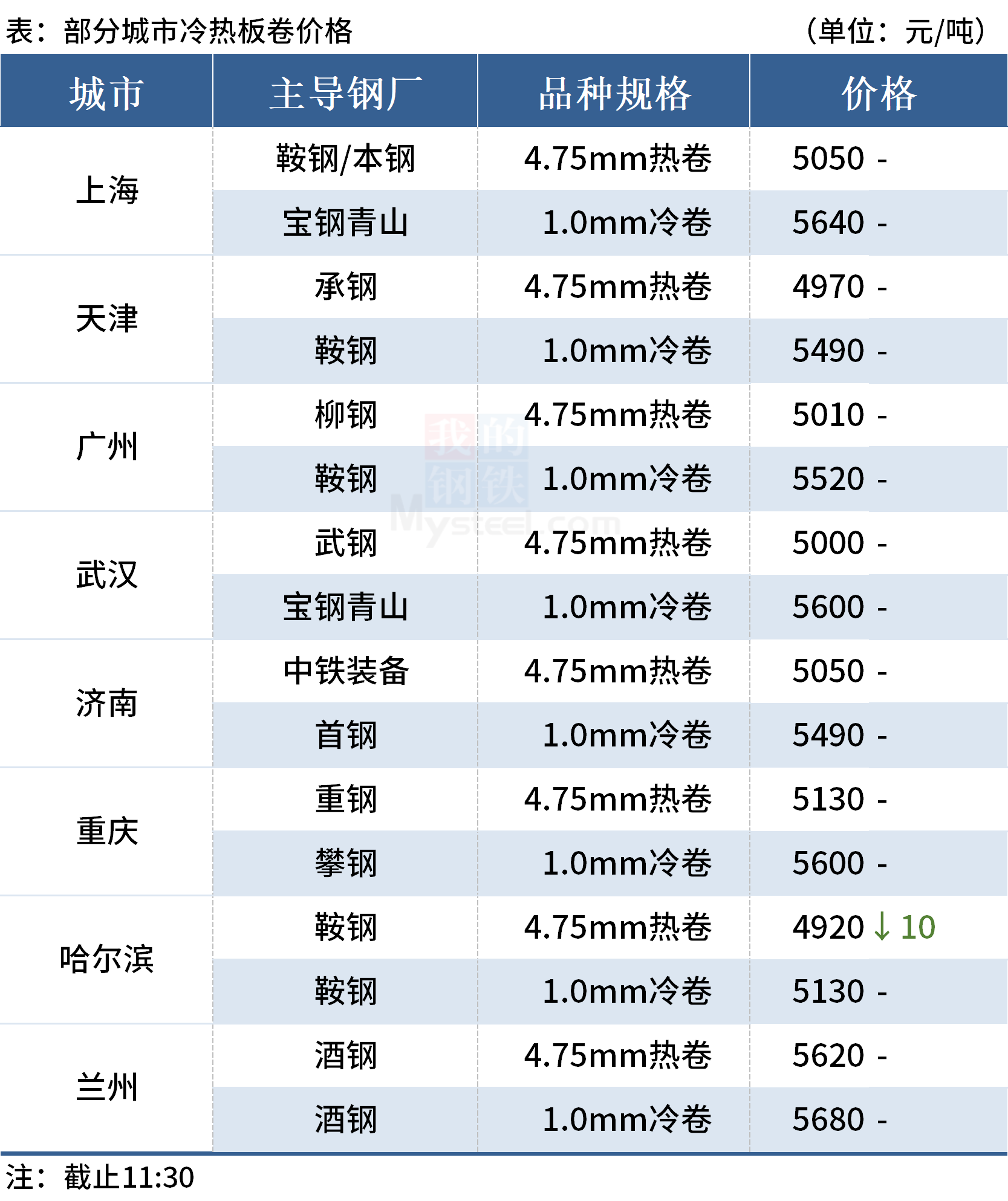 ◎武汉:10日早盘冷轧市场价格暂稳,1.0宝钢青山卷5600,1.5卷5570,3.0卷6150。(单位:元/吨)