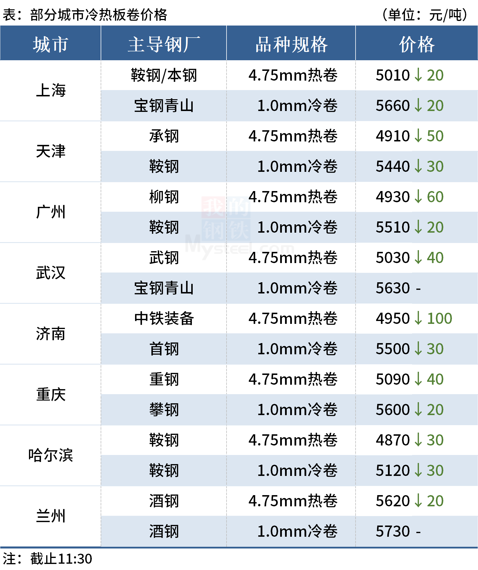 ◎乐从:15日早盘热卷市场价格下跌60,4.75以上普柳燕4930-4940,2.75普4990-5140锰5120-5140。(单位:元/吨)