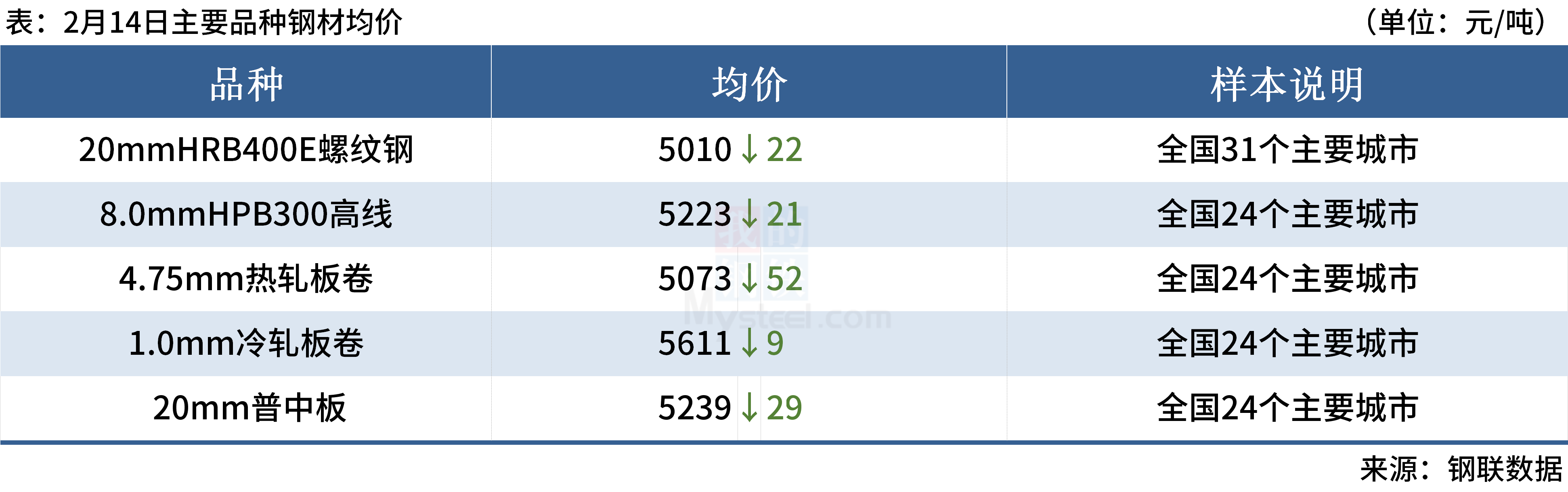 ◎ 2月14日,全国主港铁矿石成交90.30万吨,环比增7.9%;237家主流贸易商建材成交5.61万吨。
