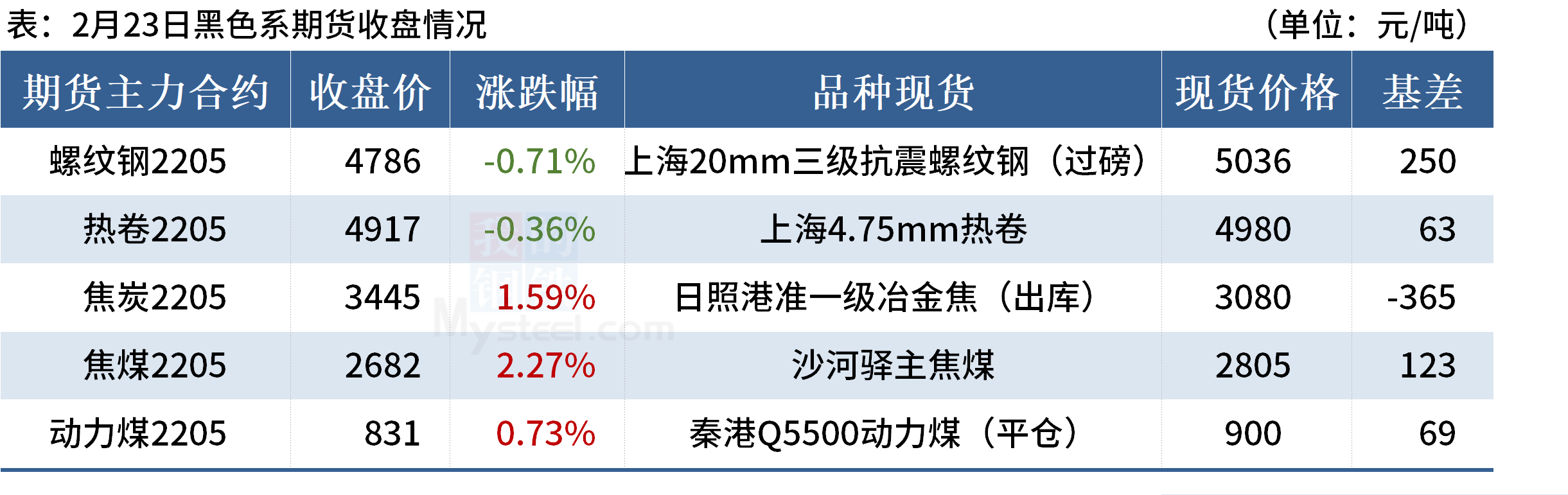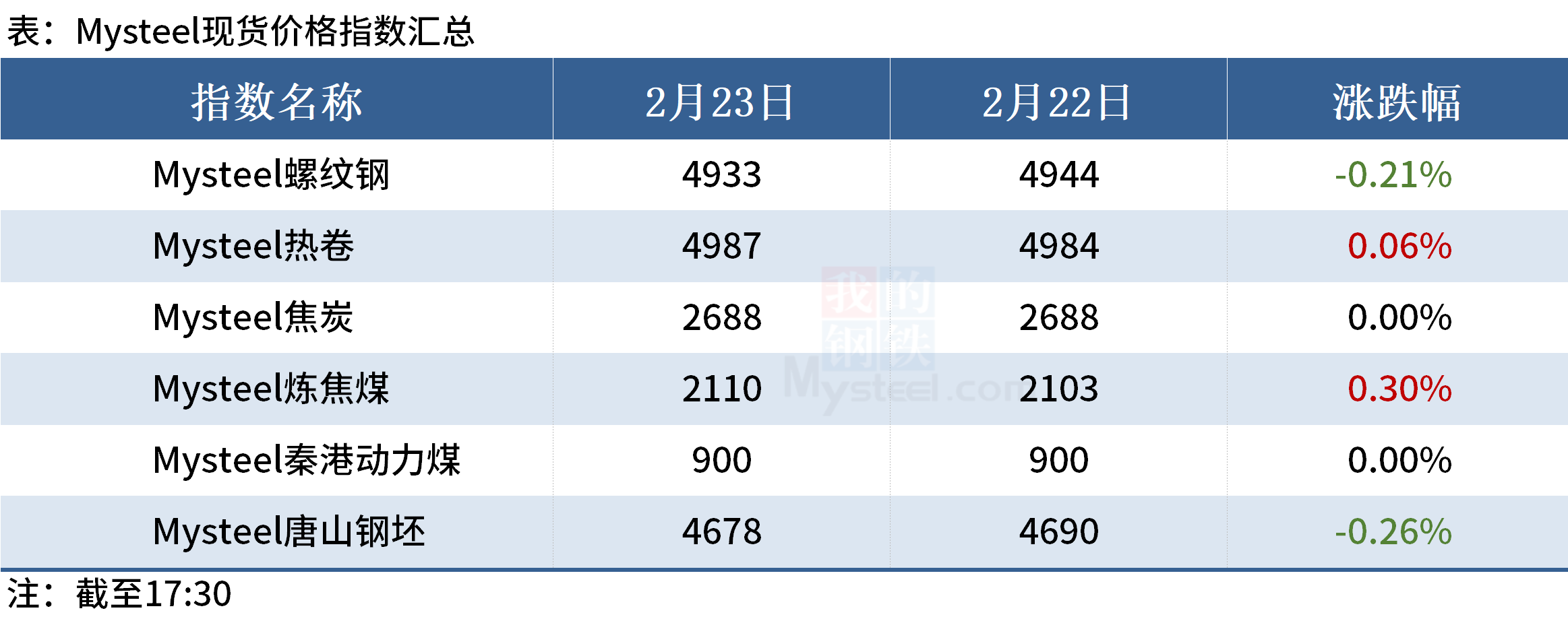 ◎ 据Mysteel调研,截止2月23日唐山地区25家长流程钢企126座高炉样本中共计复产高炉10座,复产容积12710m³,日均释放铁水产量约4.23万吨。日产能利用率预计上升至约68%,较上周四周度产能利用率上升约15.87%。详情>>