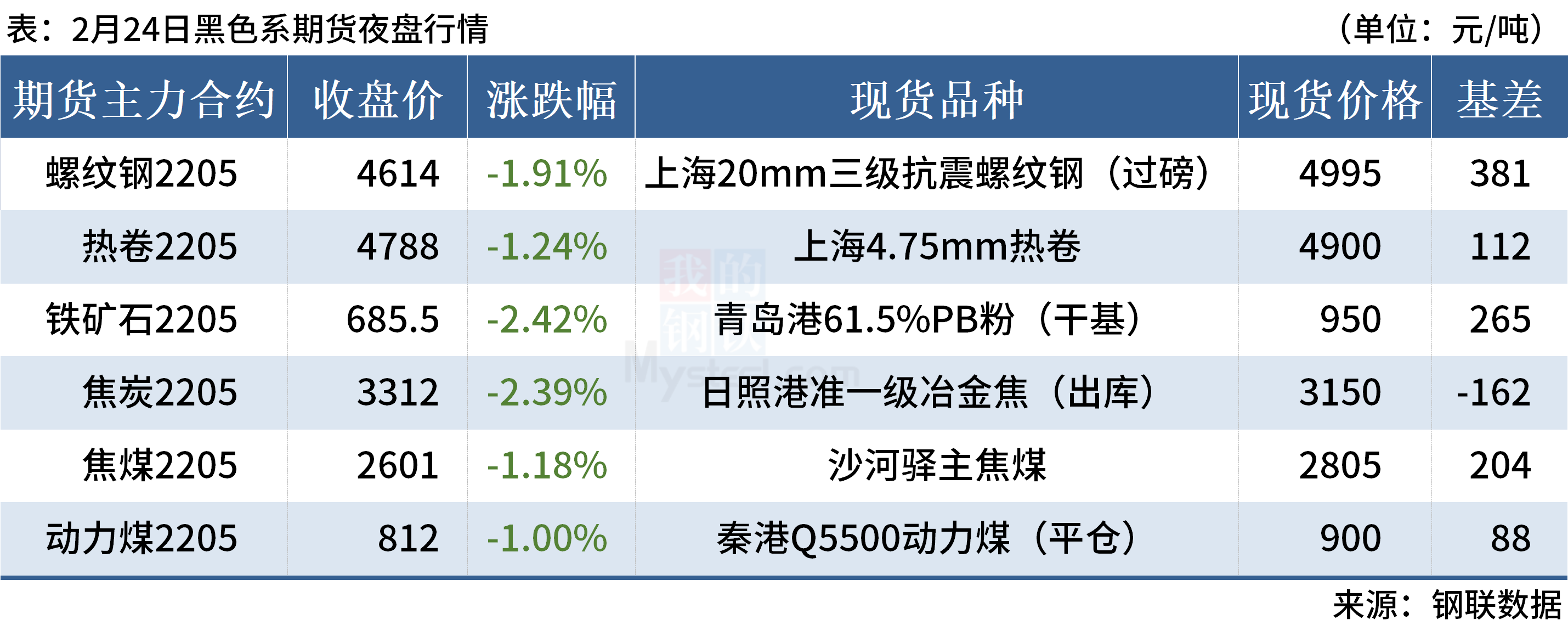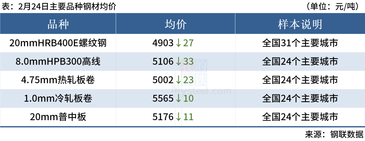 ◎2月24日,全国主港铁矿石成交62.80万吨,环比减8.3%;237家主流贸易商建材成交9.02万吨,环比减24.8%。