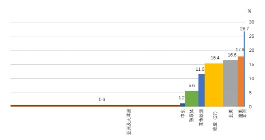 从全球各地区的粗钢产量增长速度情况看,非洲增长速度最快,达到了26.7%;欧盟(27)、北美和南美分别增长了15.4%、16.6%和17.8%;欧洲其他地区增长11.6%,独联体增长5.6%;受中国产量下降拖累,亚洲及大洋洲地区粗钢产量仅增长0.6%。