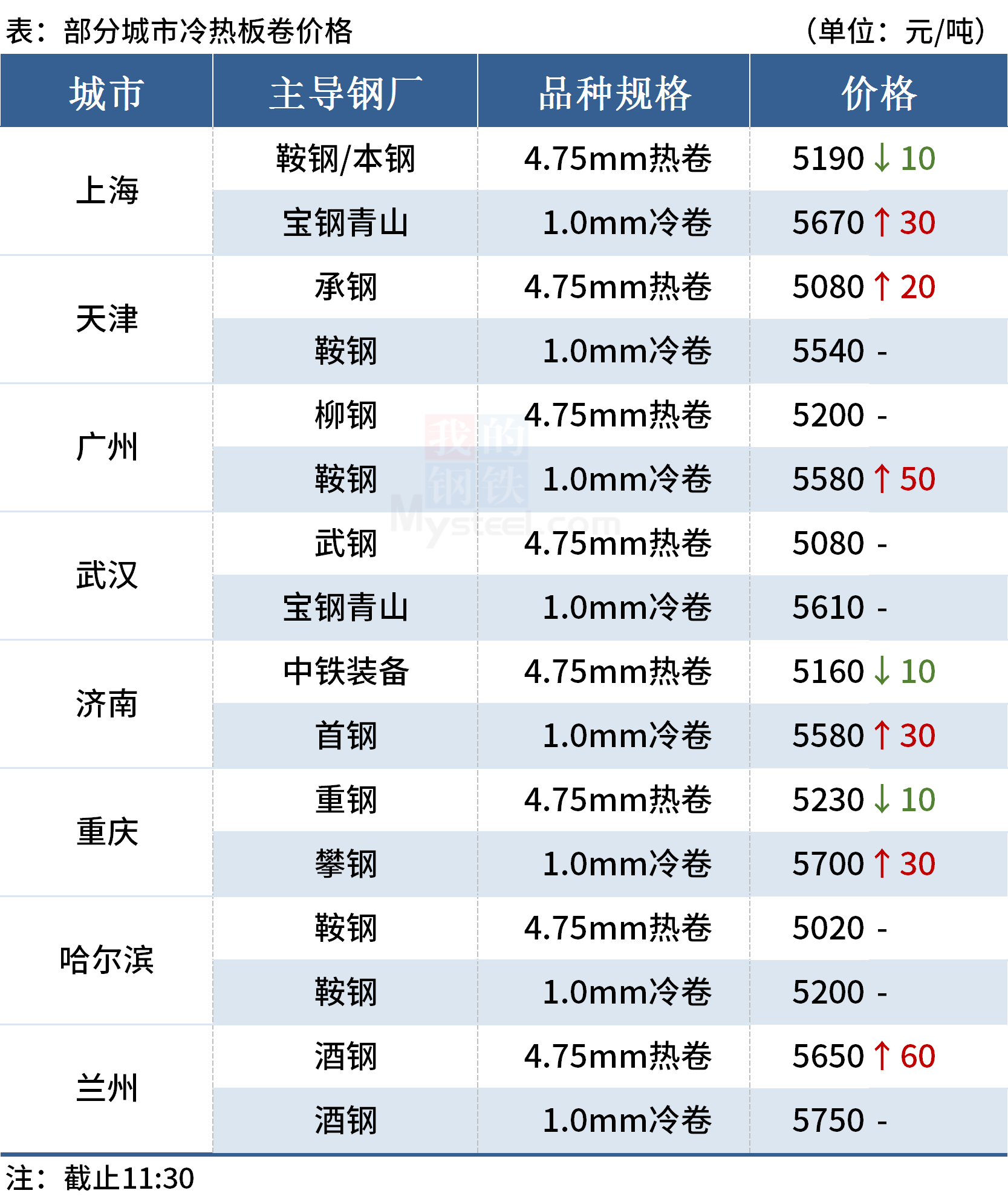 ◎武汉:4日早盘冷轧市场价格暂稳,1.0宝钢青山卷5610,1.5卷5550,3.0卷6100。(单位:元/吨)