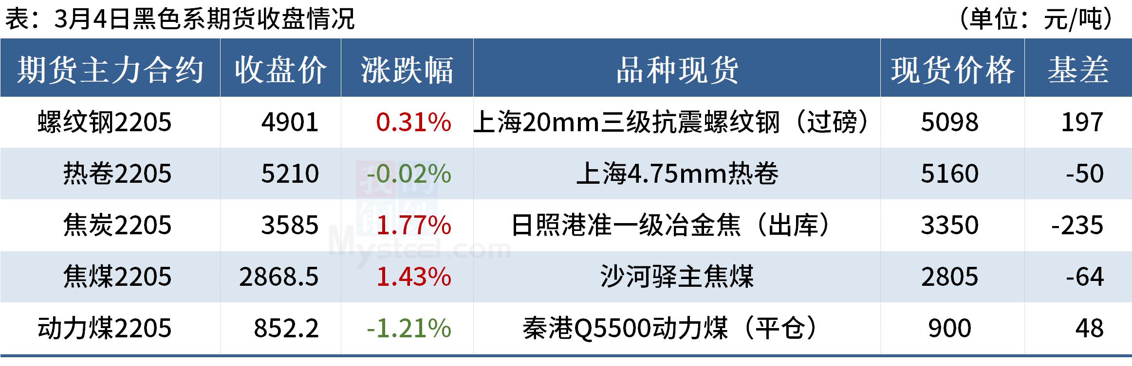 ◎ 中钢协:2022年2月下旬,重点钢企粗钢日均产量207.78万吨,环比增长9.42%;钢材库存量1610.07万吨,比上一旬减少80.28万吨,下降4.75%。