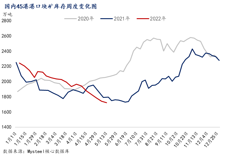2. 疫情影响的消散:随着国内疫情正在被逐渐的管控,交通运输条件将会逐步恢复到疫情出现前的一个状态,有利于缓解疫情影响下国内矿与进口烧结矿的运输,尤其是国产球团的运输的陆续恢复可能会压缩部分钢厂对于块矿的使用空间。