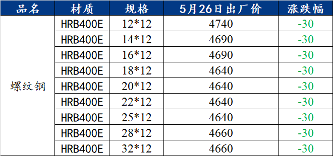 5月26日河北鑫达建筑钢材出厂直发价格: