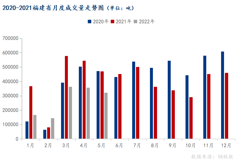 我们都知道,今年春节后福建省建筑钢材库存总量高点低于去年同期36.64万吨,而供应方面,今年由于建筑钢材利润较低,高炉企业多有铁水转移情况,电弧炉企业开工率不及去年同期,可以说供应端整体缩量。再看截止5月底库存总量却高于去年同期。这中间的数据逻辑告诉我们,今年的需求情况非常不理想,下面我们来看一下5月份的需求情况。